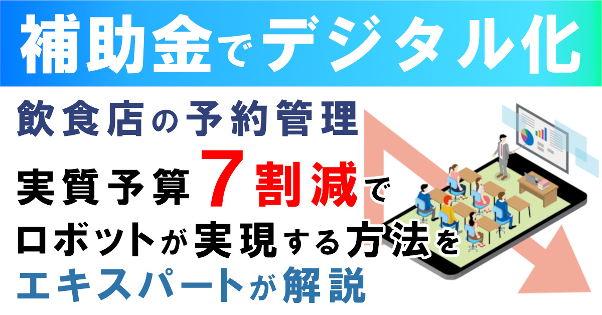 この補助金や助成金を最大限に活用していただくために、本セミナーでは『飲食店のDX化(予約管理ロボットなど)投資における補助金・助成金の利活用方法』についてご説明します。